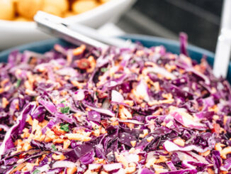 Place prepared purple cabbage, carrots, flat-leaf parsley, and onions into a large mixing bowl and fold to combine.…