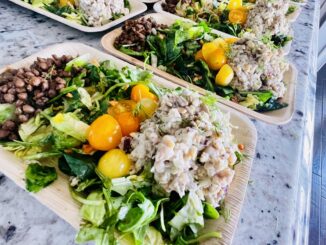 By Dawn Hilton Williams, The Vegucator Serves up to 8 INGREDIENTS 3–15 oz cans of chickpeas (garbanzos), rinsed and drained 3/4 cup celery, finely diced 1⁄2 cup red onions, finely diced 2 TBSP fresh dill, rough chopped 3/4 cup vegan mayonnaise 2 TBSP stone ground or Dijon mustard 2 TBSP relish (optional) DRY INGREDIENTS Zest of 1 medium lemon 2 TBSP dulse granules (or 1 TBSP nori flakes, ground) 1/2 tsp garlic powder 1⁄2 tsp black pepper 1⁄2 tsp kosher salt (optional) METHOD ADD garbanzo/chickpeas to food processor and quick pulse in 4-5 second intervals for two rounds to break them up (not mushy), remove from processor, add to large mixing bowl and repeat until finished all the beans.…